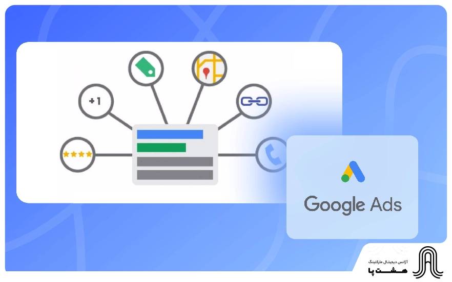 افزونه گوگل ادز یا افزونه تبلیغات گوگل (Google Ads Extension) بخشی از تنظیمات تبلیغات در گوگل است که به شما امکان میدهد اطلاعات بیشتری را در کنار آگهی خود نمایش دهید. این اطلاعات میتواند شامل لینکهای داخلی سایت، شماره تماس، آدرس، قیمت محصولات یا حتی تصویر و تخفیفها باشد